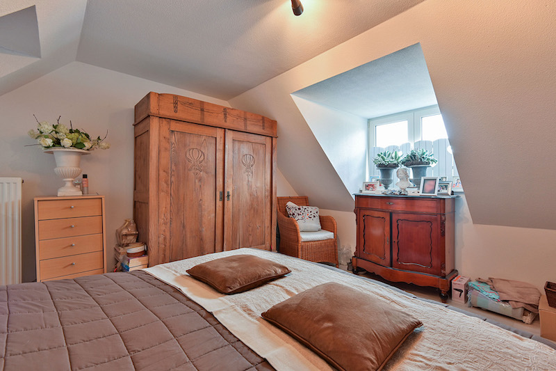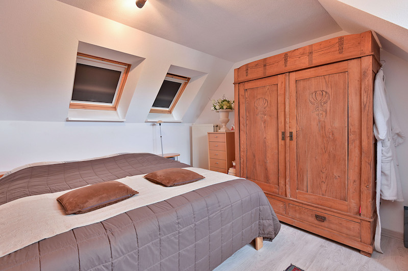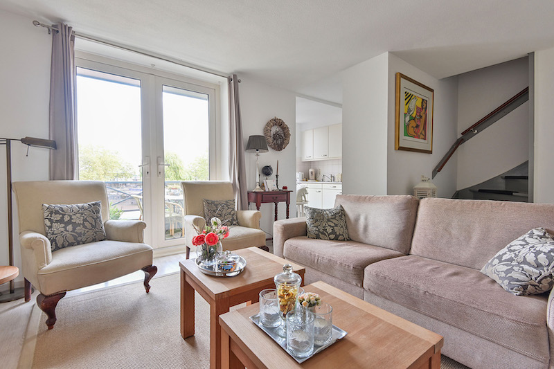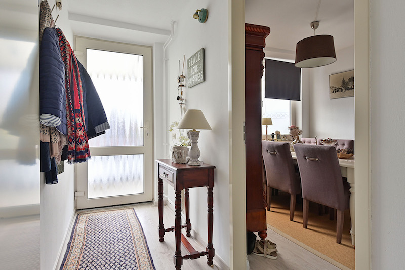 Buiten heeft deze bovenwoning nog een aparte berging om de afvalcontainers en een fiets te stallen.